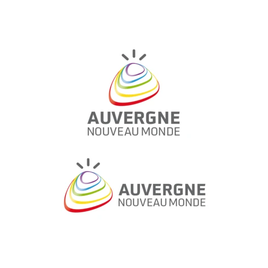 Creation of the Auvergne Nouveau Monde brand identity and multi-media graphic variations.