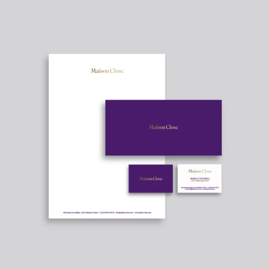 The new brand identity pays homage to the previous guidelines. It was essential to keep the color palette, mainly composed of purple, black and gold, representing the brand’s DNA. The selected typography, Superior Title, is a high-contrast transitional font, a missing link between Bodoni and Times. This family is inspired by American titles from the early 20th century. Modern and legible, it supports reduction well and can be used in hot metal printing as well as in casting or on textiles.